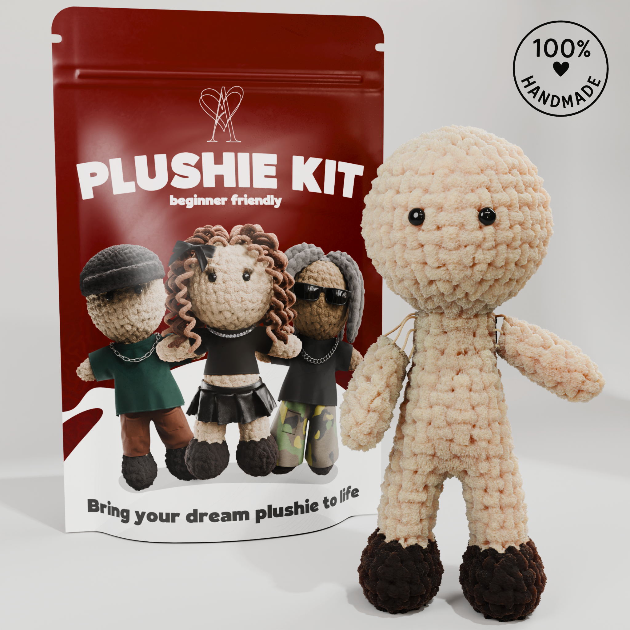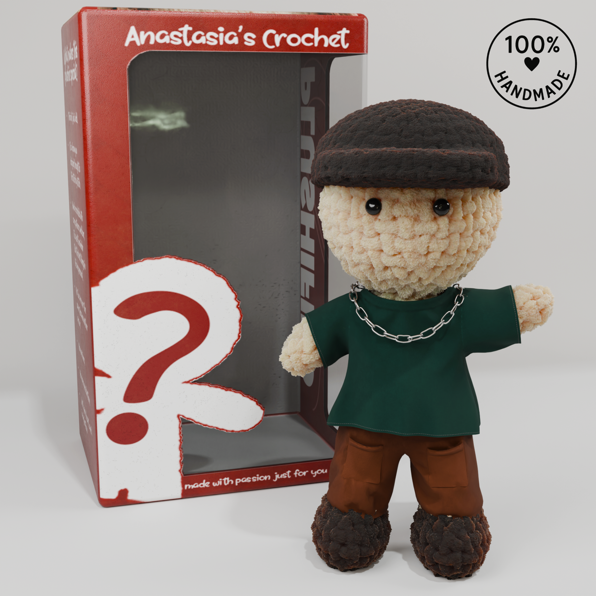 Crochet meets 3D technology. You design the doll in our virtual customizer, we bring it to life with yarn, fabric, and 100% handmade detail.